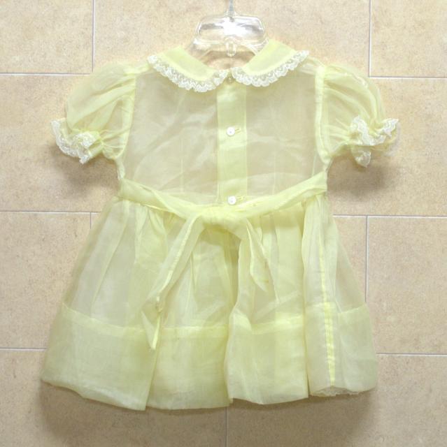 アンティーク べビードレス ピンク イエロー。内側に白のレースの2枚合わせになったいて、襟回り、袖口のレースがとっても可愛いくてオシャレなベビーアンティークドレスです。美品です。プラスティックハンガー付