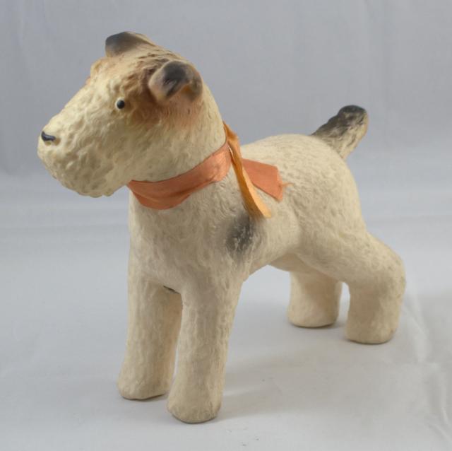 アンティーク スクイーキー ラバードール ドッグ、テリア。製造会社、年代は不明です。スクイーキーは鳴りません、経年の汚れなどはありますが、状態は良いです。サイズ:w18×h15,5cm
