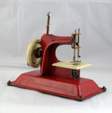アンティーク トイミシン レッド。 Stitch Mistress Gatewayのラベルが付いています。1950年代アメリカ製 可愛い赤の手回しミニチュアミシンで、動きます。経年による錆や色ハゲがあります。サイズ:W21,3×D11,3×H17cmsewing44