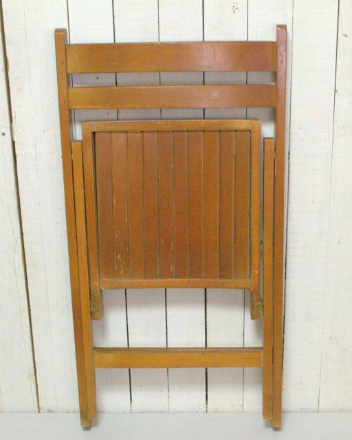 アンティーク 木製フォールディングチェア、折り畳みいす。アメリカで実際に使われていた、とってもシャビーな雰囲気のイスです。実際に使用も可能ですし、ドールや植木鉢をのせてインテリアとして飾ると、とっても素敵ですね。経年によるキズや汚れ、色ハゲがあります。木製、アメリカ。