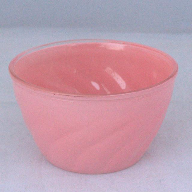 アンティーク PINKガラスボウル。深さもあるのでアクセサリーなど小物入れにに使ってもいいですね。リム部に小さなチップがあります。