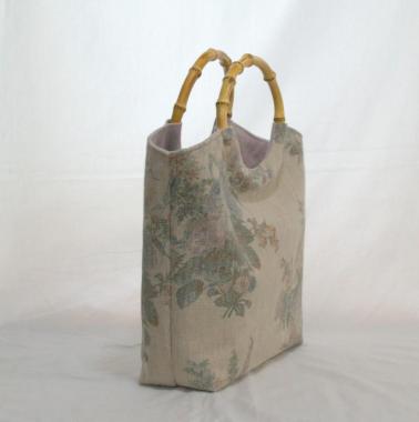 素材:表・裏地とも綿麻,自然素材のバッグハンドル使用